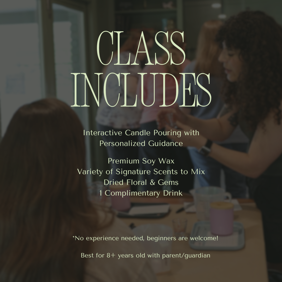 No experience needed — I’ll walk you through each step so you leave with a candle you’re proud of.